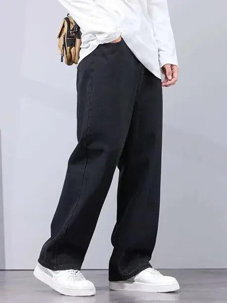 Men Loose Fit Mid Rise Black Jeans