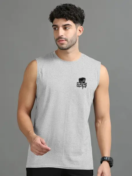 Men Printed Round Neck Pure Cotton Grey T-Shirt