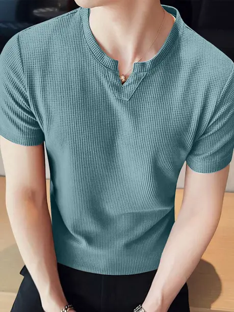Men Solid V Neck Polycotton Blue T-Shirt